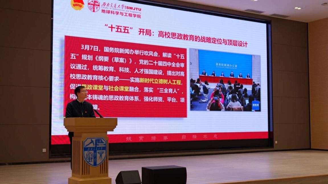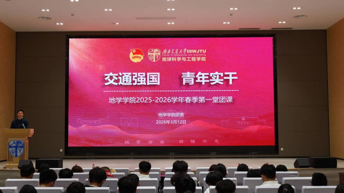 立足“十五五”规划教育科技人才一体发展要求与2026全国两会教育提质部署,3月12日,地球科学与工程学院“交通强国·青年实干”春季第一堂团课在犀浦校区双一流中心报告厅开讲。本次团课由地学学院团委书记杨都强老师主讲,学院党委副书记曾洁、全体辅导员老师及学院学生代表参加活动。