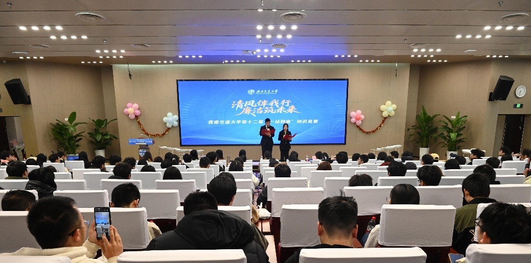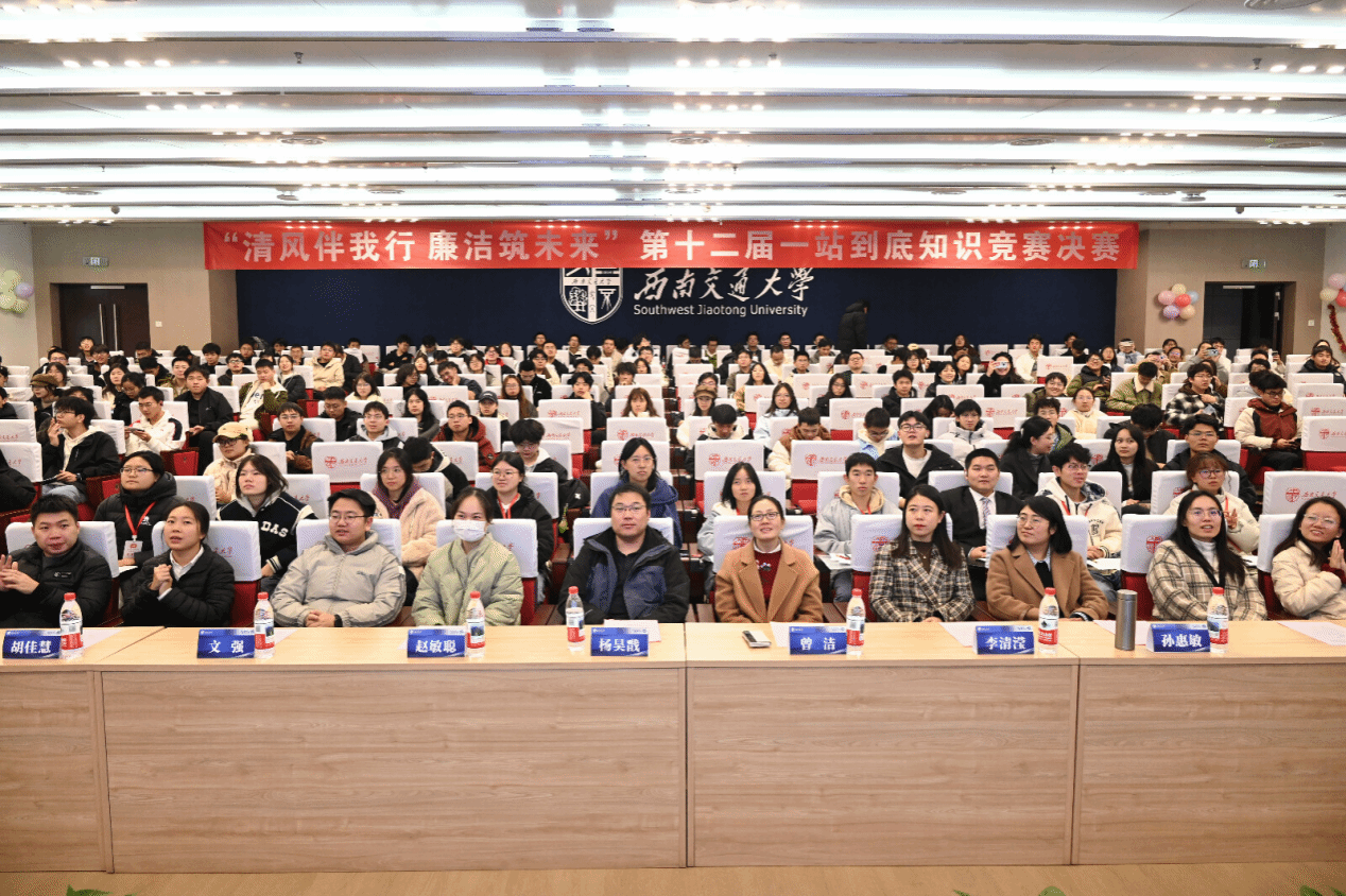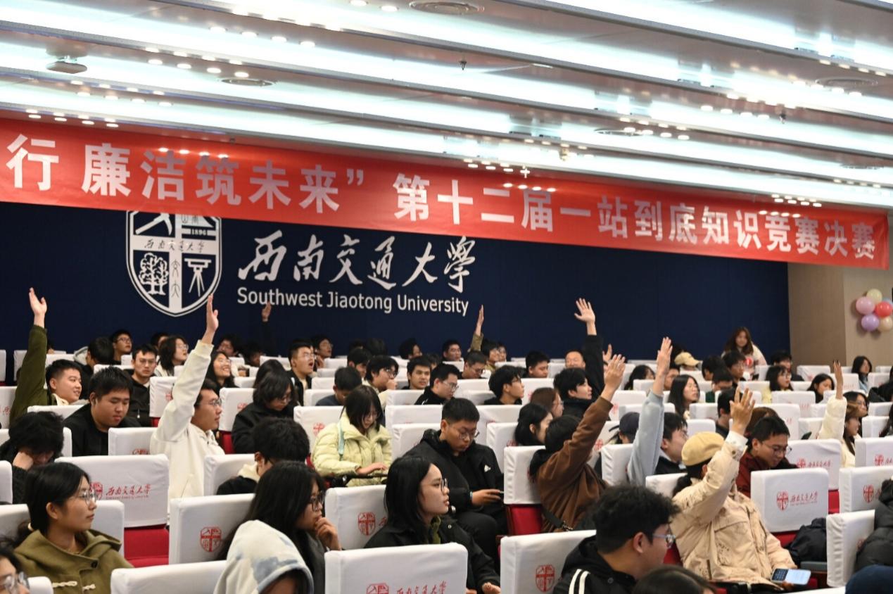 11月21日,由西南交通大学纪委办公室(党委巡察办、监察处)、校团委主办,地球科学与工程学院承办的第十二届“一站到底”知识竞赛决赛于犀浦校区图书馆二号报告厅顺利举办。本次大赛以“清风伴我行,廉洁筑未来”为主题,旨在通过知识竞答的形式,全面贯彻党的二十大和二十届历次全会精神,锲而不舍落实中央八项规定精神,引领青年学生守好廉洁底线,让青春行稳致远。