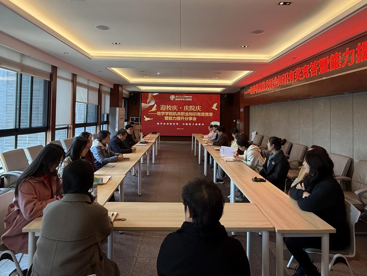 为迎接130周年校庆,庆祝学院成立15周年,进一步提升机关女职工职业素养与业务能力,近日,地学学院机关以“地学奋进新征程,巾帼聚力建新功”为主题,以学促干、以赛赋能,成功举办职业知识有奖竞答暨能力提升分享会。学院党委书记郑简平,校工会副主席王轶、校工会组织女工办公室陈秀梅,及学院机关全体职工参加活动。