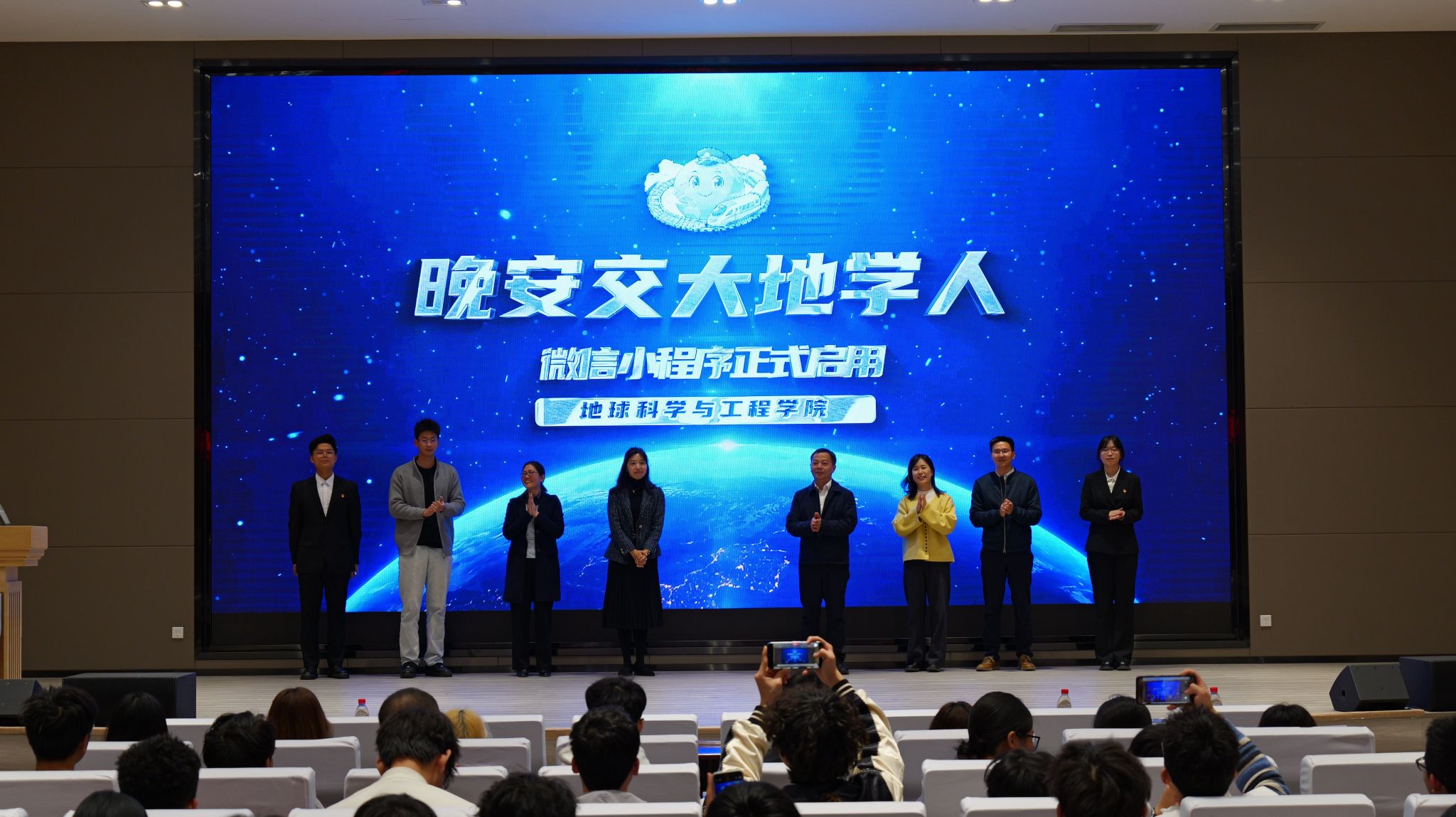 此外,由学院博士生结合学科特长,自主开发的“晚安交大地学人”晚点名小程序在启动会上正式发布。该小程序旨在通过信息化手段,更好地掌握学院学生学习生活情况,提升管理服务的精细化水平。与会领导及学生代表共同启动“晚安交大地学人”晚点名小程序。